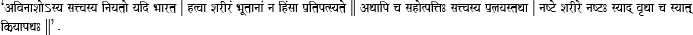 Therefore, the self being eternal, even after destruction of the creatures it is not destroyed. If destruction of the self is considered along with the body, then with the destructionof the body all the way of action spoken by the scriptures will be worthless –