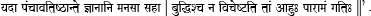the suggestion is to be in the state of yoga, making the five senses, together with mind cease from their normal – empirical – activities and the intellect itself not stir –